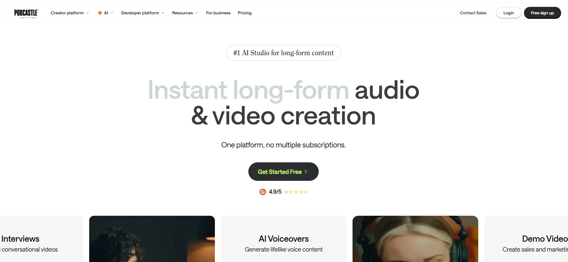 Podcastle is an all-in-one platform for creating and editing audio and video content. It helps creators produce engaging podcasts and lifelike AI audio with a text-to-speech feature that converts written text into natural-sounding voice.